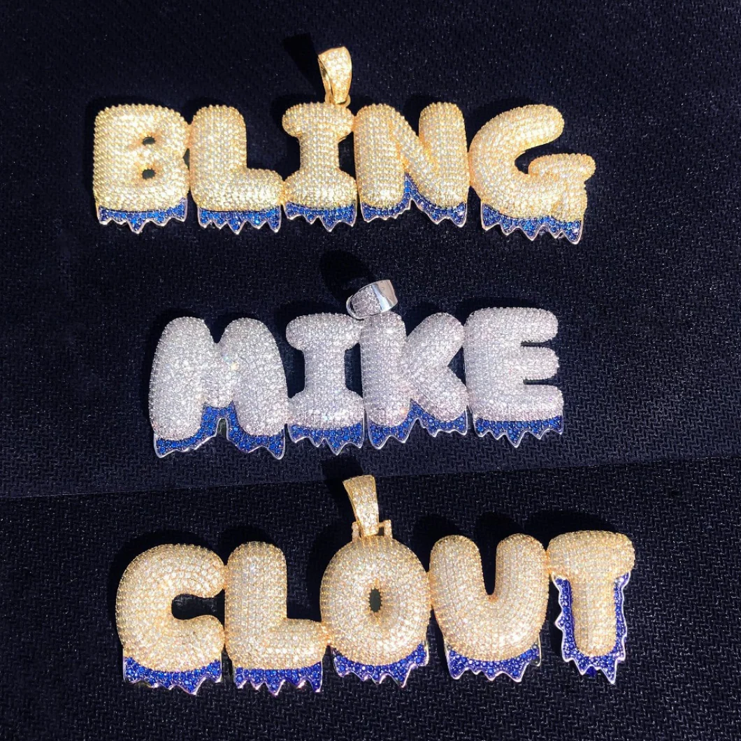 Blue Finish Iced Out Personalized Custom Name Necklace Pendant